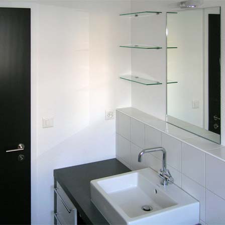 sowie vollständig modernisierte sanitärbereiche. das sockelgeschoss wurde mit zusätzlichen zimmern und einer neuen nasszelle erweitert.