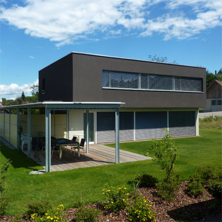 ein offener autounterstand und der westseitige gedeckte sitzplatz