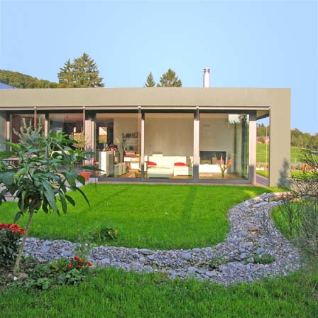 bereits mit der wahl eines flachdachbaus beginnt für uns die umgebungsplanung.